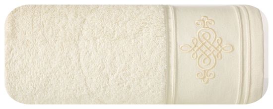 Bombažna brisača iz mehkega frotirja z izjemno vpojnostjo. Širok rob je okrašen s klasičnim ornamentom. Barve, ki jih je mogoče prati. širina: 70 cm, dolžina: 140 cm, barva: krem, teža: 600 GSM, sestava: 100 % bombaž