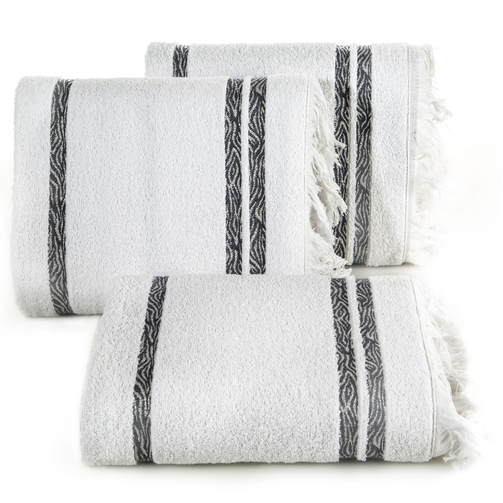 Mehka in zelo markantna brisača iz vpojnega frotirnega bombaža, okrašena z žakardom, tanko obrobo z bleščečo nitjo in obrobo s kratkimi čopki. širina: 70 cm, dolžina: 140 cm, barva: bela, teža: 485 GSM, sestava: 100 % bombaž; 95 % bombaž, 5 % poliester