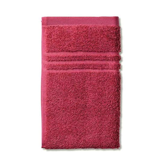 .Leonora rabarbara v <strong style="white-space: je izdelan iz mehkega 100% bombaža, ki nudi prijeten občutek, dobro vpojnost in trpežnost. Za serijo Leonora so značilni tkan rob in sodobni odtenki, vključno s subtilno pastelno rdečo, ki kopalnici doda topel in eleganten pridih. Ta manjša brisača je idealna kot gästetuch – za goste, stranišče ali hitro sušenje rok.