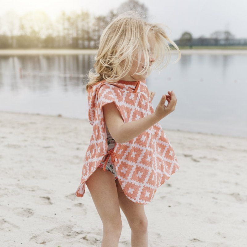 Muslinski pončo s kapuco. Uporablja se lahko po kopanju, ob bazenu, na plaži… Narejen je iz hidrofilnega bombaža, dobro vpija vlago in se hitro suši. Trendovski dizajn! Celoten opis