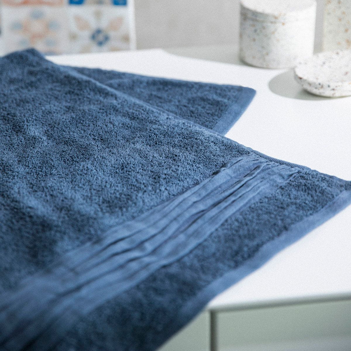 Modra brisača MERIDE je odlična tako za osebno kot dekorativno uporabo, saj prostoru doda eleganco in stil.
