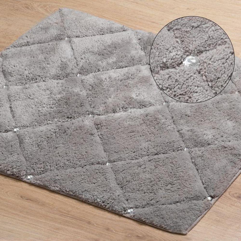 Mehka in efektna preproga okrašena s kristali širina: 50 cm, dolžina: 70 cm, barva: srebrna, teža: 1650 GSM, sestava: 100% bombaž