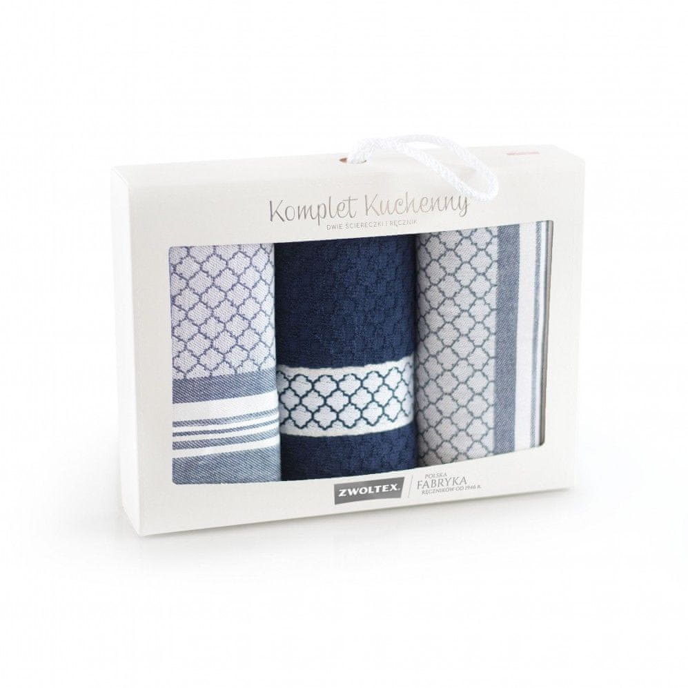 Tridelni komplet v elegantni škatli vsebuje dve hitro sušeči krpi in žametno mehko bombažno brisačo iz kolekcije Morocco. Serija, ki jo je navdihnila toplina maroških počitnic, je dih eksotike, kot nalašč za ljubitelje potovanj in izvirnih oblikovalskih rešitev. Izvirnost kompleta poveča intenzivna barva črnila. Maroko bo čiščenje hiše naredil prijetnejše in veliko bolj priročno.