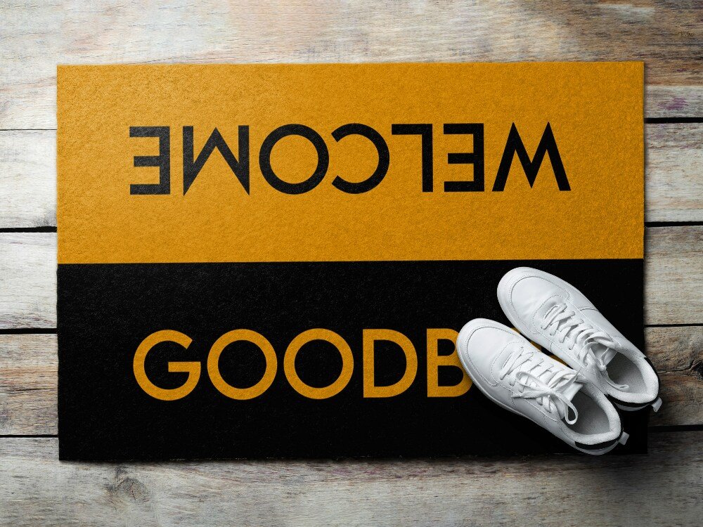 tulup.si Predpražnik za pred vrata Welcome Goodbye Oranžna barva 60x40 cm