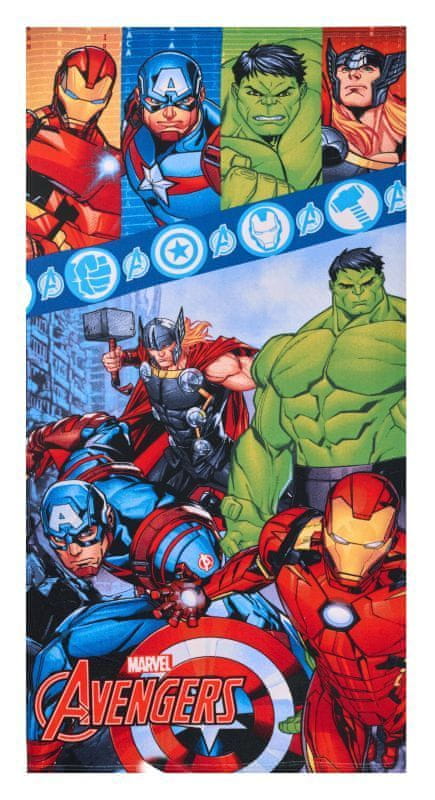 FARO Micro Avengers Hero brisača 70/140 Brisača je narejena iz mehkih in nežnih mikrovlaken z visokim lasom. Brisače iz mikrovlaken se hitro sušijo in dobro vpijajo vodo. Brisače lahko samo obesite in so takoj suhe, ta material pa se tudi ne guba. Brisača je potiskana na eni strani. 100 % poliester. Velikost: 1× 70/140 cm