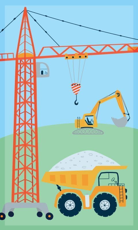 FARO Baby Towel Construction 50/30 Otroška brisača velikosti 50×30 cm. Priročna otroška brisača za kopalnico, otroško sobo in na poti. 100 % bombaž – frotir Velikost: 1× 50/30 cm