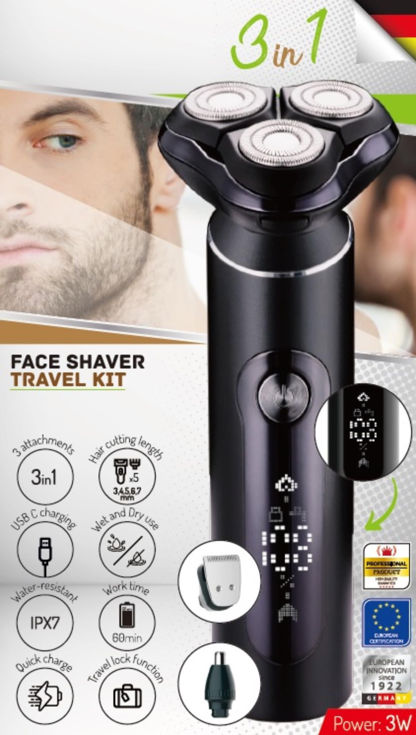 Brivnik za obraz | Prirezovalnik las | Trimer za nos in ušesa | Vodoodporen IPX7 | Potovalni kovček | Čas delovanja do 60 minut