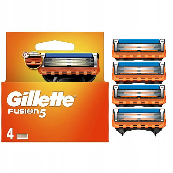 Originalna embalaža proizvajalca Gillette Fusion5 ima pet britvic, ki so bližje skupaj razporejene za zmanjšanje pritiska – zmanjšajo draženje kože ter povečajo udobje in učinkovitost.