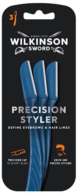 Z aparatom Wilkinson Sword Precision Styler lahko natančno oblikujete obrvi ali brado in prodrete na težko dostopna mesta. Vsaki britvici je priložen zaščitni pokrov.