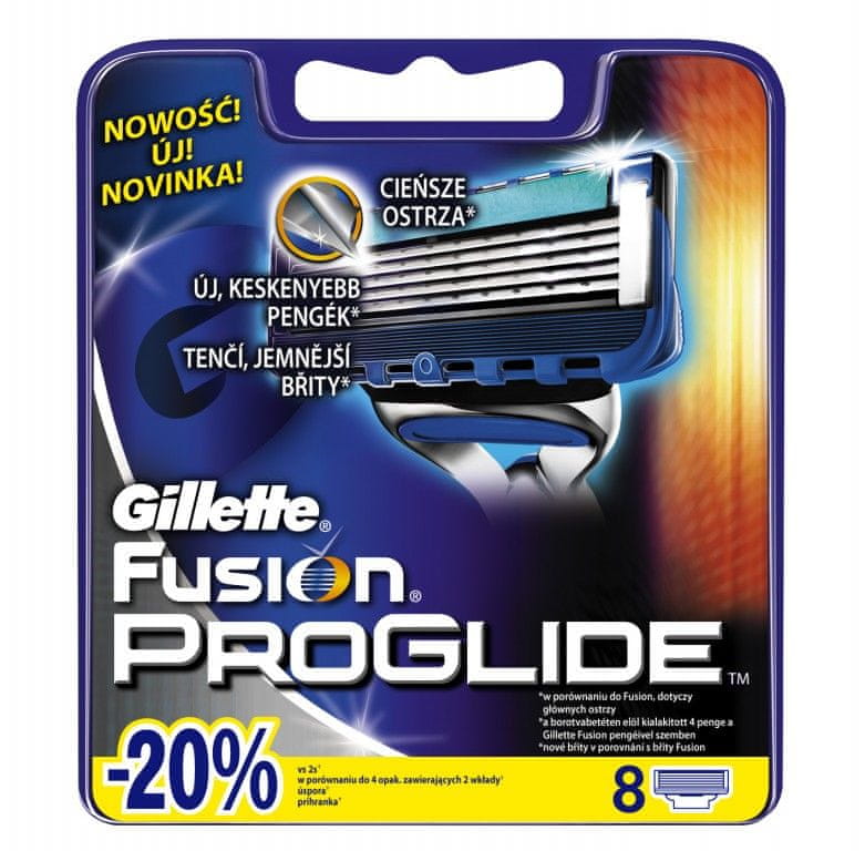 Namenjalne brivske glave Gillette ProGlide s 5 rezili, ki zmanjšujejo trenje, obrije vsako brado. Za gladko in dolgotrajno britje. Mikrolamelne glave nežno napnejo in zgladijo kožo, izravnalno rezilo pa obrije težko dostopne predele.