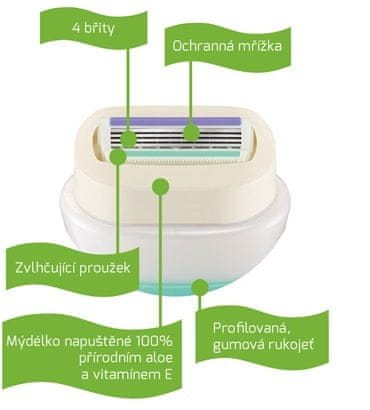 Za natančno in nežno britje so na voljo nadomestne glave za brivnik Wilkinson Sword Intuition Sensitive Care z milom. Ima premično glavo s 4 rezili, ki jo obdaja vlažilni hipoalergeni losjon s 100 % naravnim izvlečkom aloe vere in vitamini za najbolj temeljito nego kože. Poleg tega ne potrebujete dodatnega mila, gela ali kreme za britje.
