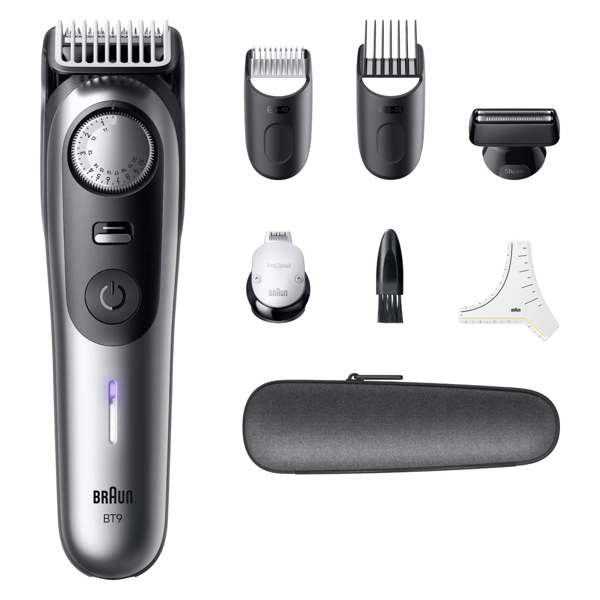 - Profesionalna natančnost in 100-% nadzor: Braunov najboljši urejevalnik brade Series 9 vam omogoča prirezovanje, britje, oblikovanje robov in podrobnosti z vrhunskimi brivskimi pripomočki za popolne linije, gladke prehode in enakomerno dolžino