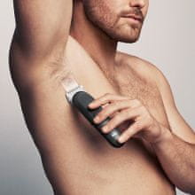 Urejevalnik dlak po telesu je opremljen z Braunovo tehnologijo SkinShield, ki je natančno zasnovana za zaščito kože na občutljivih predelih pred urezninami. SkinShield olajša urejanje in prirezovanje dlak povsod po telesu – varno, nežno in higienično