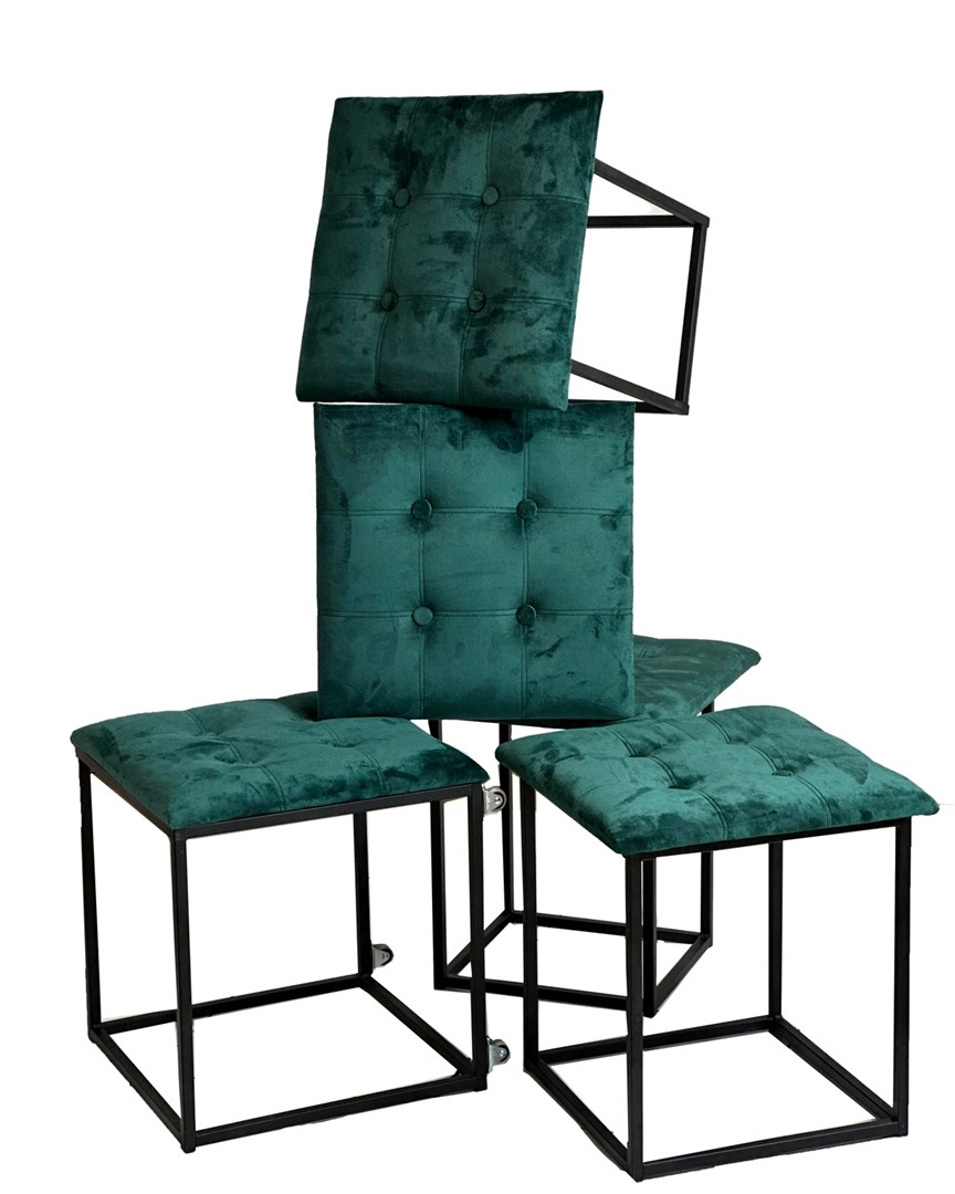Odkrijte izjemno vsestranskost in sodoben dizajn s tem 5-v-1 pufom, ki združuje funkcionalnost z eleganco. Ta inovativen kos, ki meri 50×50×50 cm, vsebuje pet udobnih stolčkov, ki jih je mogoče enostavno odstraniti in namestiti nazaj, zaradi česar je idealna rešitev za vse, ki cenijo prihranek prostora in slog. Izdelan je iz visokokakovostnih materialov, vključno z žametom, peno, vato in OSD ploščo, zato puf ne ponuja le udobnega sedenja, temveč tudi doda eleganco vsaki notranjosti. Poleg tega uporaba jeklenega profila s končnimi pokrovčki in kolesci olajša enostavno premikanje, zaradi česar je neverjetno praktičen dodatek k vsakemu sodobnemu domu. Ta 5-v-1 tabure, ki je na voljo v različnih barvah in materialih, je odlična izbira za tiste, ki iščejo tako funkcionalnost kot prefinjen slog.