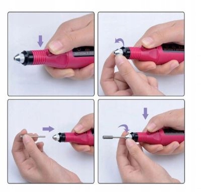 • Enostavna zamenjava konic ?: Menjava rezalnikov je hitra in enostavna – samo držite kovinski gumb, odvijte glavo, zamenjajte rezalnik in jo ponovno privijte.