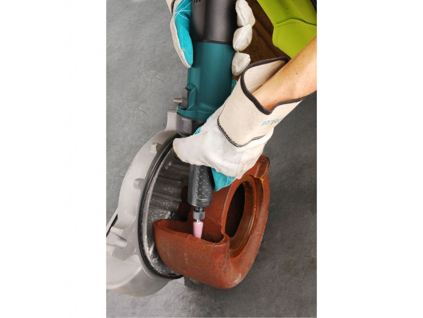 Ravni brusilnik je zasnovan za obdelavo večjih kosov kovine z brusilnimi orodji iz korunda ali karbidnimi rezkarji s 6 mm pecljem. Mednje spadajo brušenje, brušenje, odstranjevanje oblog in rezkanje kovin. Brusilnik se lahko uporablja npr. za brušenje/frezanje zvarov, brušenje ostrih robov, brušenje odrezanih ali poškodovanih kovinskih delov, brušenje na težko dostopnih mestih, kjer dostop s kotnim brusilnikom ni mogoč, itd.
