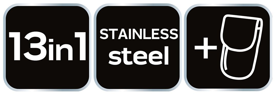 NEO 13-v-1 večnamensko orodje (ref. 63–113) je večnamensko orodje s 13 načini uporabe: klešče, lomilec matic, rezalnik žice, odstranjevalec žebljev, kladivo, 2 ploščata izvijača, izvijač PH, majhen nož, velik nož, odpirač konzerv, žaga in pila. Priložena je najlonska torbica s sponko za pas. Izdelano je iz nerjavečega jekla.