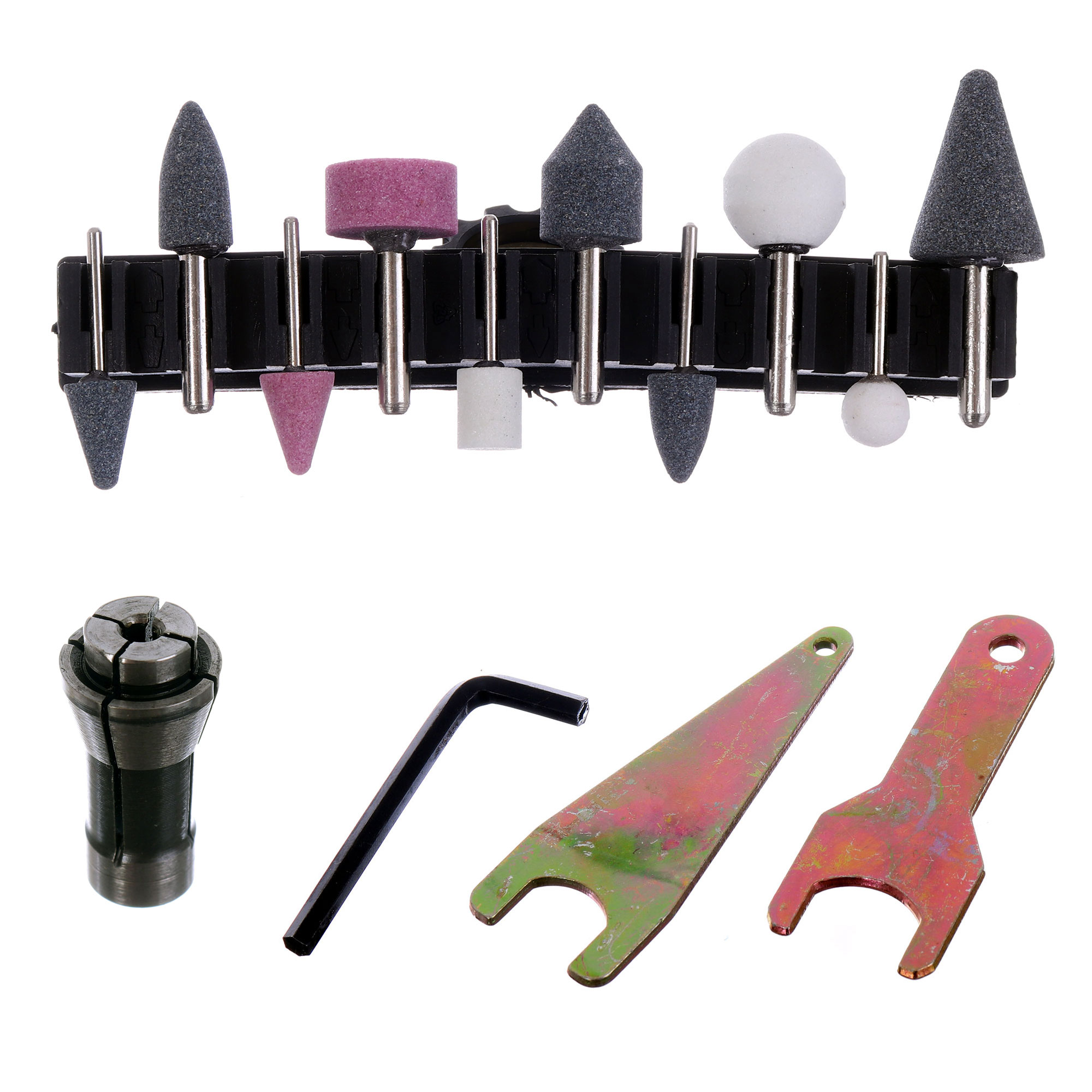 Brusilnik za rezanje in brušenje majhnih delov. Ročaj je gumiran, disk pa se zamenja s priloženimi ključi. Komplet je trdno izdelan in opremljen z redukcijo za 3 ali 6 mm držala. Uporablja se lahko tudi za rezanje. Komplet se uporablja v avtoservisih, različnih delavnicah, modelarjenju in gospodinjstvih.
