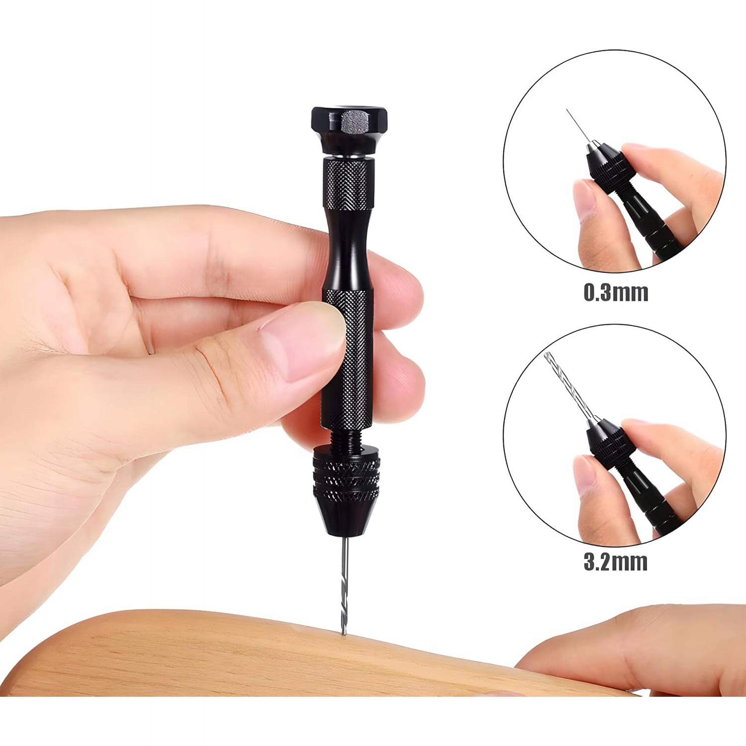 Ročni mini vrtalni stroj, črn + komplet 25 svedrov 0,5–3 mm za les in plastiko DIY
