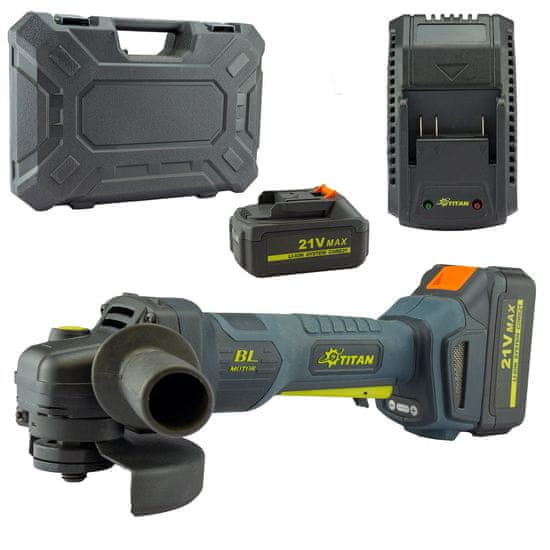 TITAN-tools Komplet 125mm M14 akumulatorski brezkrtačni kotni brusilnik 21V 2x4Ah
