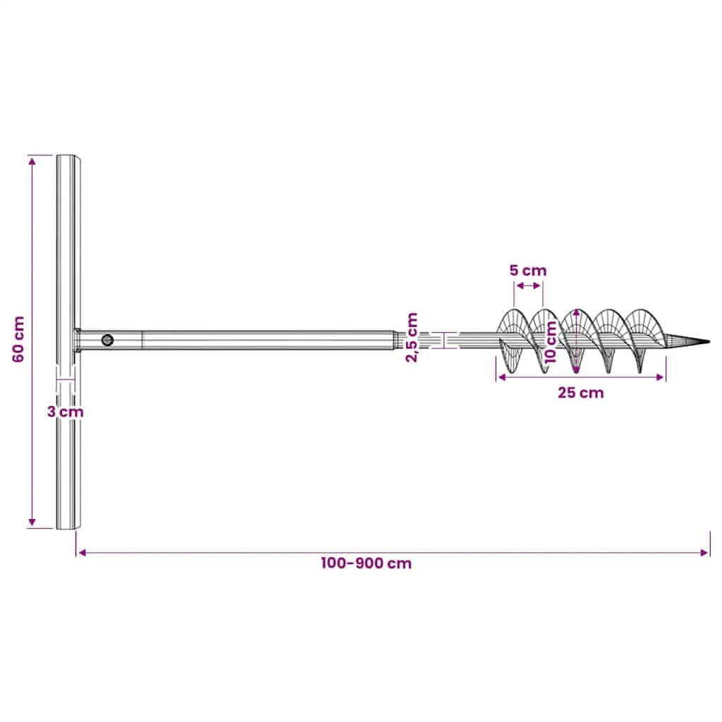 Vidaxl Jeklen spiralni vrtalni sveder za zemljo z ročajem 100 mm z 9 m pod.