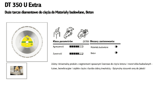 Disk je zasnovan za rezanje z motorno žago. Celoten opis