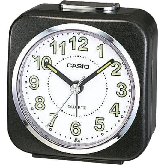 Budilka Napajanje z baterijo Kvadratno ohišje Plastično ohišje Črna barva ohišja Ročna številčnica Bela barva številčnice Številčnica z arabskimi številkami Budilka