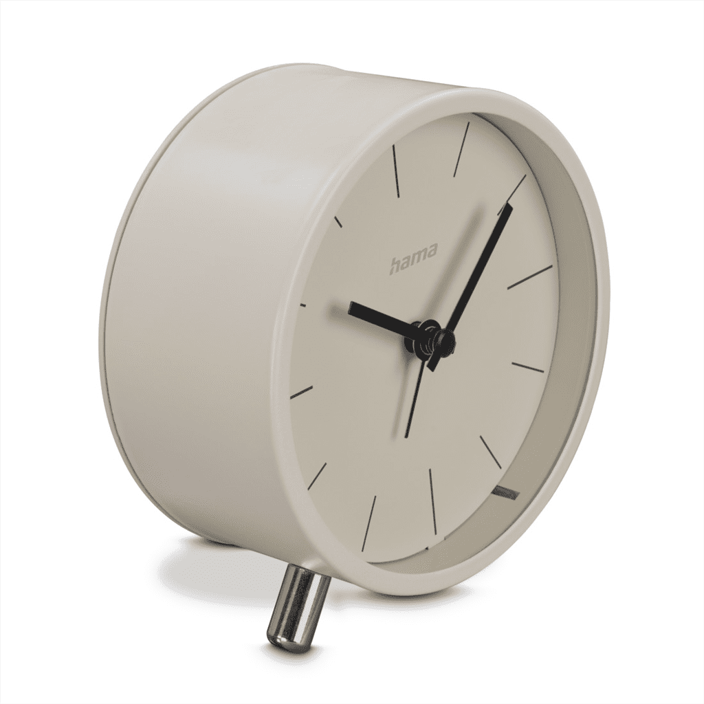 Hama Flores, radijsko vodena budilka, premer 11 cm, tiho delovanje, osvetlitev, sivo-beljasta