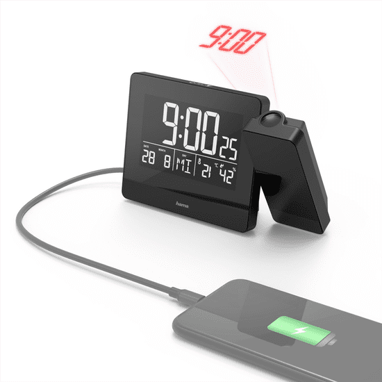 Hama Plus Charge, budilka s projekcijo časa in priključkom USB za polnjenje mobilnega telefona