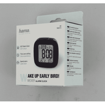• budilka, krmiljena z radijskim signalom DCF za samodejno nastavitev časa glede na najnatančnejšo uro na svetu – digitalni prikaz časa, časa zbujanja, datuma (dan/mesec) in temperature (v °C ali °F) – ročni …