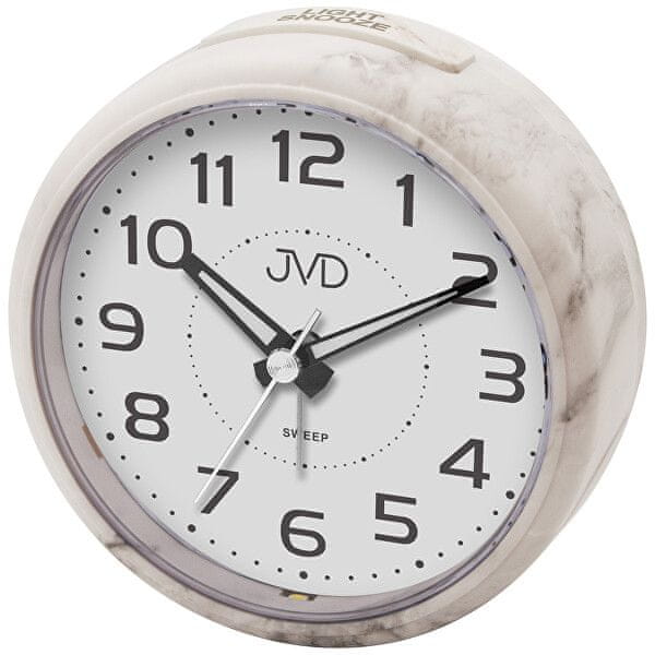 Nepogrešljiva budilka JVD se poda vsaki spalnici. Že na prvi pogled navduši z imitacijo marmorja. Številčnico lahko po potrebi osvetlite, ima pa tudi svetleče kazalce. Zagotovo vas bo razveselilo tiho delovanje kazalcev, ki je popolnoma nemoteče. Globina budilke je 50,7 mm.