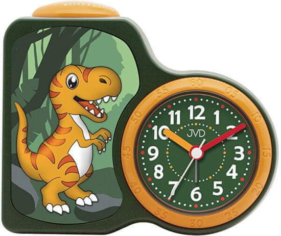 Vsak otrok se bo zaljubil v budilko blagovne znamke; JVD, budilka ga bo navdušila s svojim nezamenljivim motivom dinozavra. Budilka ima tiho delujoč sekundni kazalec in LED osvetlitev. Globina budilke je 70,6 mm.