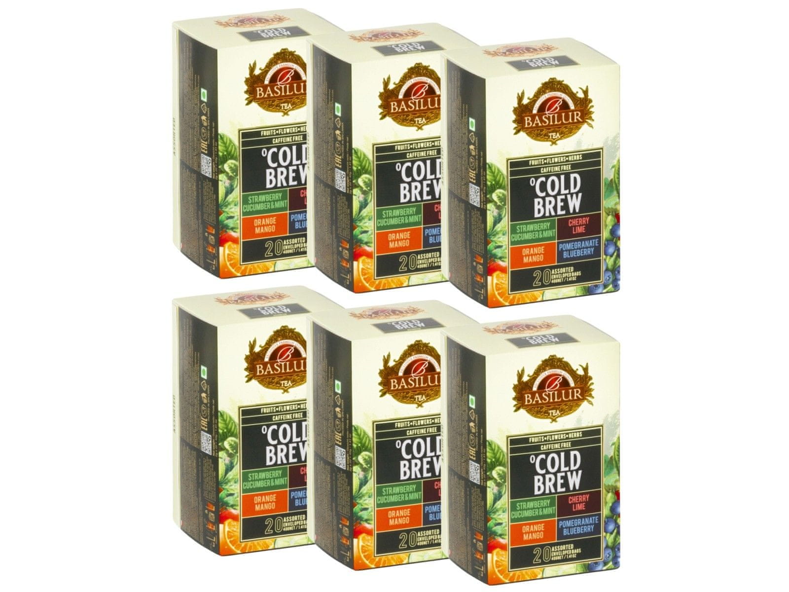 Basilur BASILUR Cold Brew - Komplet 4 sadnih okusov, hladen čaj brez kofeina v vrečkah 20 x 2 g x6