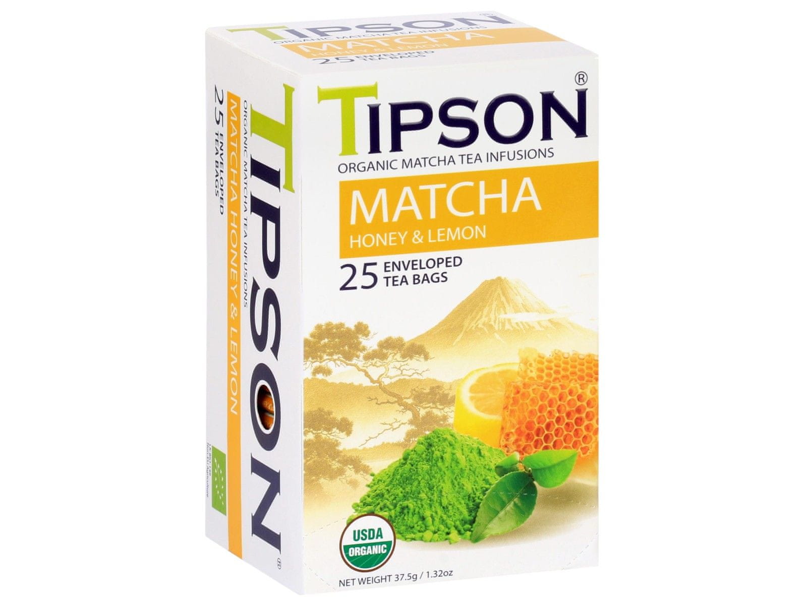 Tipson Matcha Honey & Lemon je organska mešanica japonskega čaja matcha, obogatena z limonsko travo, naravno aromo limone in medom.