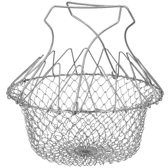 Ne potrebujete tisoč različnih kuhinjskih dodatkov. Namesto tega uporabite pametno košaro za cvrtje za več stvari. Košara za cvrtje je zložljiva in se lahko uporablja tudi kot cedilo, postavljena na vrh ponve za kuhanje v pari ali kot vložek za ponev. Seveda se lahko uporablja tudi za enostavno izpiranje zelenjave ali preprosto kot elegantna košara za sadje. Vzdržljiva košara za cvrtje je izdelana iz nerjavečega jekla in jo je po uporabi enostavno očistiti.