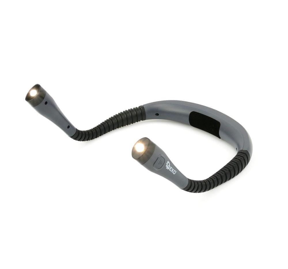 Nastavljiva LED ovratna luč z dvema neodvisnima viroma svetlobe. Izjemno multifunkcionalen pripomoček, kot nalašč za branje knjig, različna natančna dela, pri katerih je pomembno, da delovno mesto osvetlite z dveh strani. Uporabljal se bo tudi pri izvajanju različnih vrst delavniškega dela.