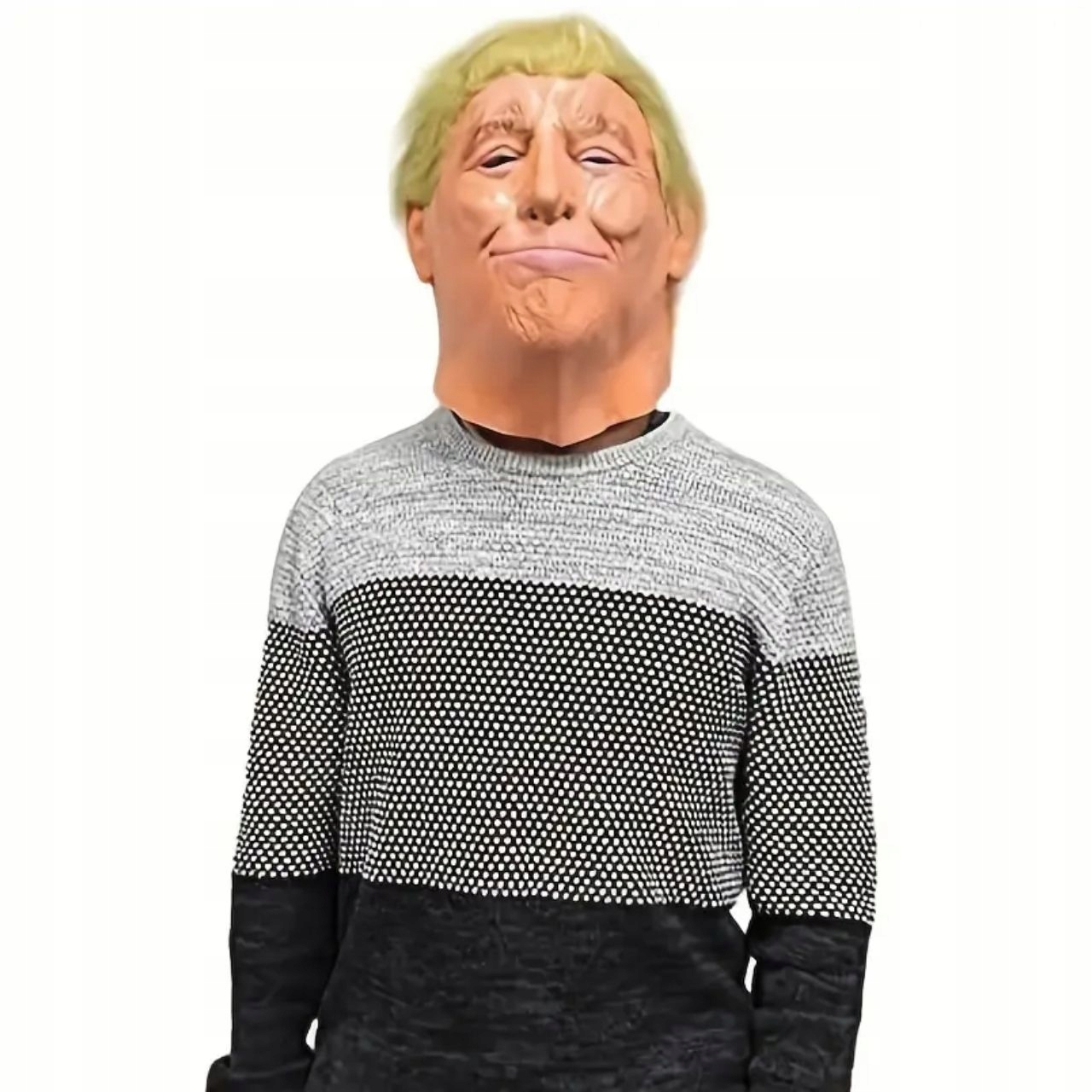 Maska je bila izdelana s pozornostjo do podrobnosti – izgube, skozilase, do obrazne mimike, ki odlično dopolnjuje šaljive stajlinge. To je odlična možnost za ljubitelje parodije, politične komedije in izvirnih šal.