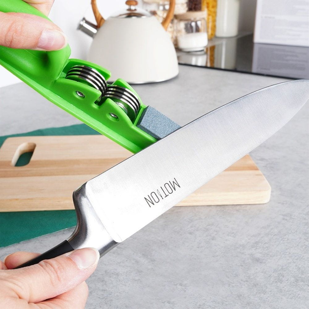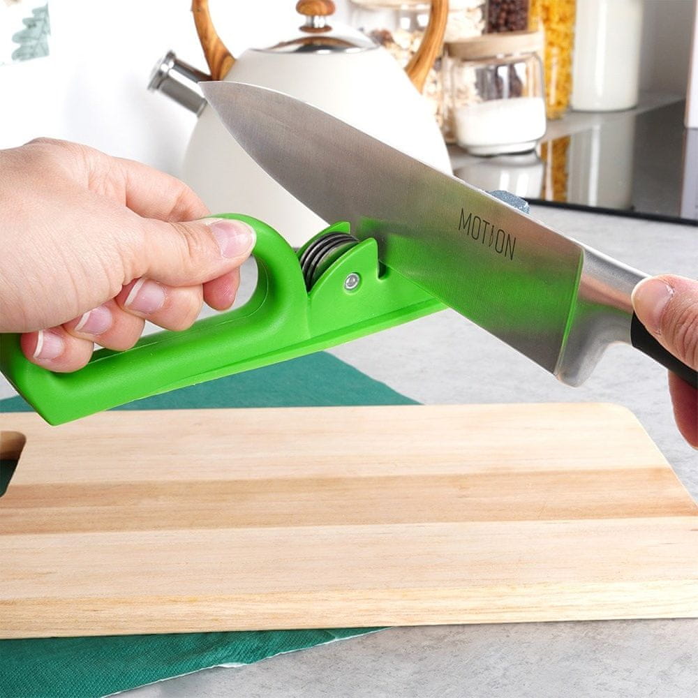 Ta brusilec nožev je uporaben v vsakem domu. Nabrusi lahko kateri koli nož, ko postane top. Ima udoben ročaj za udobno uporabo. Stabilno podnožje zagotavlja, da se šilček varno prilega pultu. Kovinski brusilni diski zagotavljajo natančno in enakomerno ostrenje rezila ter v hipu povrnejo popolno ostrino. Poleg tega brusni kamen omogoča glajenje in enakomernost rezila. Zahvaljujoč brusilcu se ostrina nožev ohrani dolgo časa.