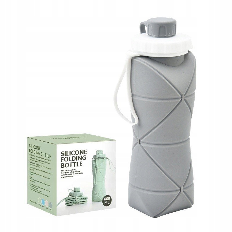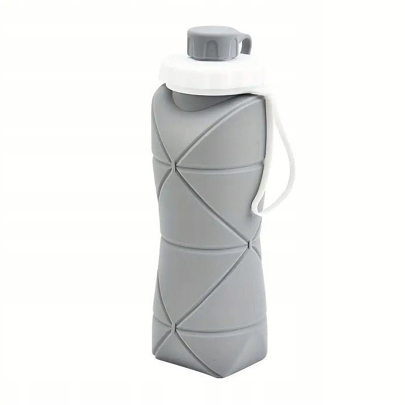 Steklenica za vodo Zložljiva športna silikonska potovalna steklenica 600 ml, siva Celoten opis