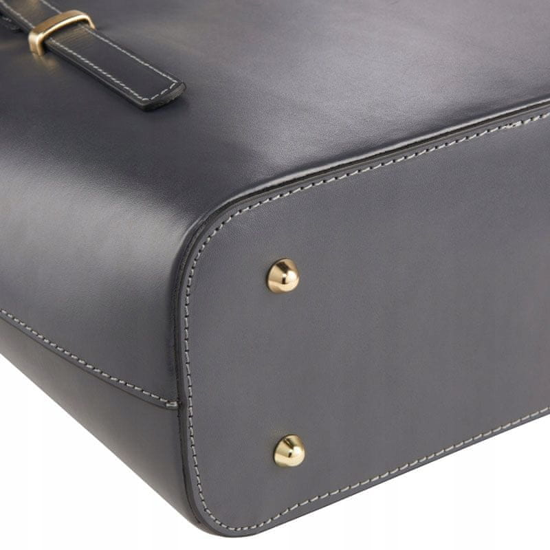 Ženska usnjena torbica Betlewski®, velika, nakupovalna. Ta ženska torbica iz kolekcije Vivienne znamke Betlewski je odlična izbira, ker: kupujete poljski izdelek – torbica je izdelana na Poljskem; izdelana je iz pravega govejega usnja; ima otrdelo, klasično obliko – ta model je popoln za pisarno; ima majhne zlate „nogice“ – te zagotavljajo zaščito dna torbe pred praskami; ima elegantno, neverjetno ženstveno grafitno barvo; je modna in izjemno prostorna torba. Udobna, elegantna in izjemno ženstvena oblika. Ženska usnjena torbica iz kolekcije Vivienne je izdelana iz polnozrnatega italijanskega govejega usnja. Ima posebno, otrdelo obliko, tako da so vaše stvari vedno varne. Zasnovana je bila s pozornostjo do vsake podrobnosti – grafitni odtenek usnja lepo poudarijo zlati detajli. Ta velika ženska torbica zlahka sprejme dokumente A4 in manjši prenosnik ali tablico. Je zelo prostorna, zato je idealna za vsakodnevno uporabo. Vzemite jo s seboj po nakupih ali v službo in uživajte v udobju vsak dan! Ta torba je izdelana na Poljskem – z nakupom podpirate nacionalno gospodarstvo! Na prvi pogled: indeks: BVP-109 grafit, material: pravo usnje, barva: grafit, blagovna znamka: Betlewski, širina: 30 cm, višina: 27,5 cm, globina: 12,5 cm, največja dolžina traku: 120 cm. Ta dizajnerska torbica navdušuje s svojimi detajli. Na sprednjo stran torbe smo namestili logotip blagovne znamke Betlewski® v zlati barvi. Popolnoma dopolnjuje eleganten grafitni odtenek usnja in odlično poudarja gladko teksturo. Logotip je trdno pritrjen na usnje, zato ste lahko prepričani, da bo torba dolgo zdržala. Priročen sprednji žep: Na sprednji strani torbe smo zasnovali majhen žep, ki se pritrdi z magnetno sponko. Vanj lahko shranite ploščate predmete, po katerih pogosto segate, kot so zvezek, vozovnice za vlak ali parkirna karta. Dobro oblikovana notranjost – nosite svoje stvari, kot želite! Torba se zapira z zadrgo na vrhu in tako varno shrani vaše stvari. V notranjosti boste našli dva velika predala, razdeljena z enim velikim žepom z zadrgo, enim manjšim žepom z zadrgo in enim odprtim usnjenim žepom za telefon. V torbo je prostor za format A4 in lahko vanjo spravite tudi manjše prenosnike. Notranjost je obložena z elegantno podlogo, ki poudarja njeno lepoto in se popolnoma ujema z barvo usnja. Namenski žep za telefon varuje vaš telefon. V notranjosti je dodaten manjši žep z zadrgo. To je idealen prostor za shranjevanje telefona – zagotovo ne bo padel ven! Ste nezadovoljni? Zasnovali smo tudi uporaben držalo za vizitke. Vzemite torbo s seboj na konferenco ali poslovni sestanek in bodite vedno pripravljeni na profesionalne izzive! Cenili boste udobje – snemljiv naramni trak. Torba je opremljena z dolgim [največ 100 cm] usnjenim naramnim trakom. Trak je pritrjen z zlatimi vponkami, zato ga lahko preprosto snamete, če se odločite, da bi torbo raje nosili brez njega. Oblikovanje z blagovno znamko, čudovit zaključek. Hrbtni del torbe ima gladek zaključek. Na ozkem traku je tudi okrasna okrogla zaponka. Vse to vam bo pomagalo poudariti vaš stil in izstopati iz množice. Občudujte lepoto ženstvenih detajlov! Zaščitne nogice – ščitijo dno torbe pred praskami. Podnožje torbe podpirajo štiri zlate kovinske nogice, ki zagotavljajo stabilnost in ščitijo pred morebitno umazanijo ali praskami. Ta subtilen dodatek povečuje udobje uporabe torbe. Kakovost in vzdržljivost sta naša strast! Torba ima certifikat o pristnosti, ki potrjuje kakovost usnja, iz katerega je izdelana. To čudovito poudarja pristnost in razred izdelka ter zagotavlja, da bo torba dolgo zdržala in vas navduševala s svojo lepoto. Presenečenja so vedno dobrodošla. Okrasni obesek za ključe z logotipom blagovne znamke je brezplačno priložen vašemu naročilu. Je bele in srebrne barve, se čudovito lesketa in naše stranke vsak dan opominja, kaj naša blagovna znamka predstavlja – stil, eleganca in visoka kakovost.