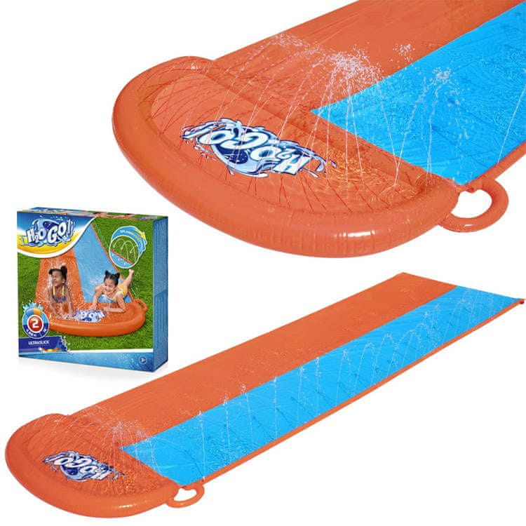 Vodni tobogan H2O GO podjetja Bestway je tobogan namenjen ljudem, ki obožujejo odlično zabavo na prostem. Tobogan je namakan s prhami, nameščenimi na toboganu. Neverjetna zabava zagotovljena! Vodne prhe, vgrajene v tobogan, bodo v vročih dneh zagotovile izjemno hladno zabavo, delujejo pa po priključitvi vrtne cevi na posebne priključke. Zaradi najsodobnejše zasnove in trpežnega, preizkušenega materiala, uporabljenega za drsno površino, bo njeno delovanje brezhibno.