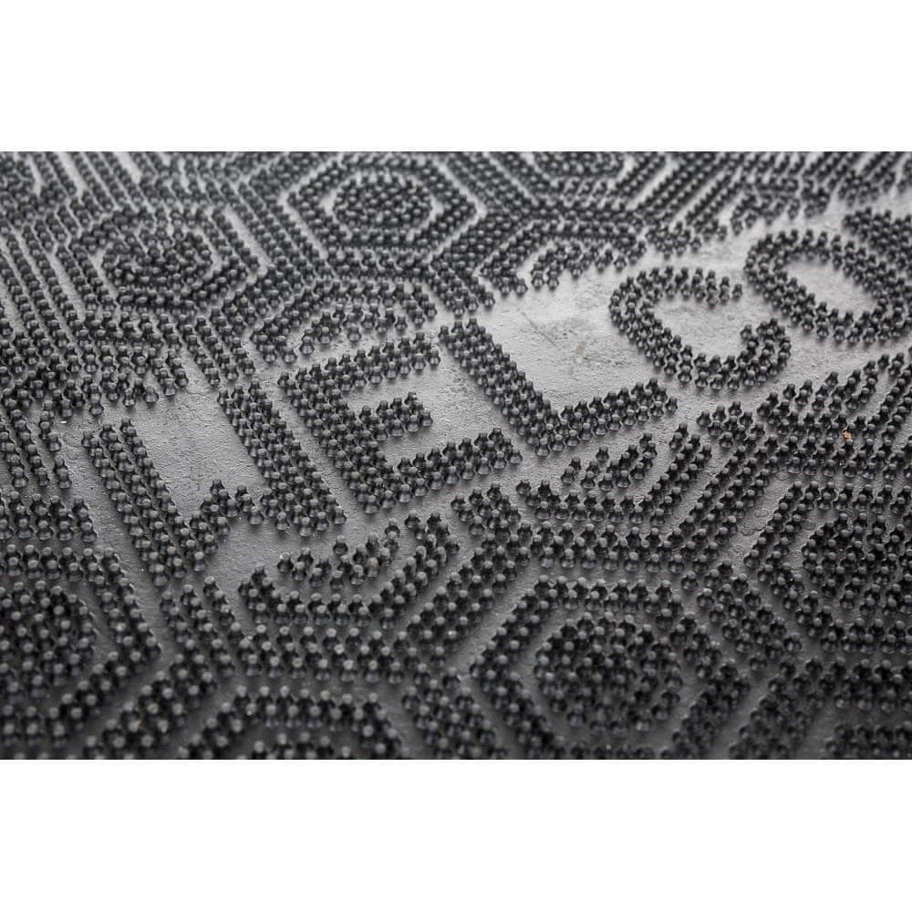 Gumijasta preproga 40 × 60 cm, WELCOME v črni barvi je primerna za čiščenje čevljev na pogosto uporabljenih vhodih v stavbe. Vzdrževanje preproge je enostavno, saj jo lahko sesate ali tapkate