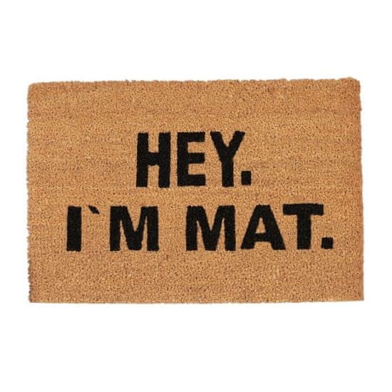 Naravna kokosova preproga polepša vaš vstop s humorjem in vzdržljivostjo. Vključuje ""Hej. Besedilo I'm Food"" ta okolju prijazna podloga združuje stil s praktičnostjo in gostom zagotavlja toplo dobrodošlico.
