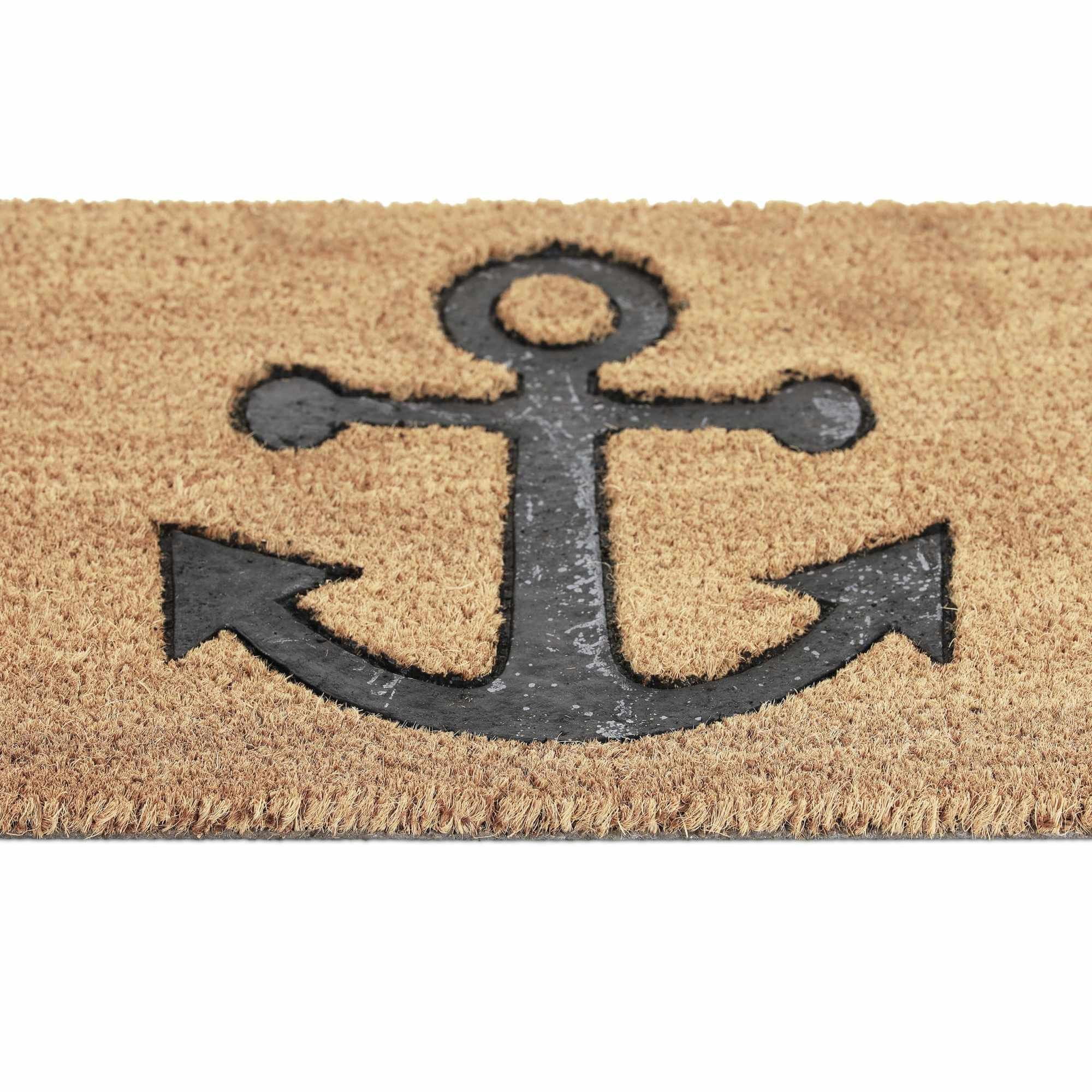 Praktična zasnova te kokosove predpražnice je idealna za ohranjanje čistega vhoda brez umazanije in peska. Spodnja stran predpražnika je prevlečena s PVC-jem, ki zagotavlja, da ostane trdno na mestu in ne drsi, ko sušite čevlje. Zaradi tega je varna in zanesljiva izbira za vse vrste talnih površin. Poleg tega ta preproga s svojim brezčasnim motivom sidra vašemu domu doda subtilen, a izrazit pridih morja.