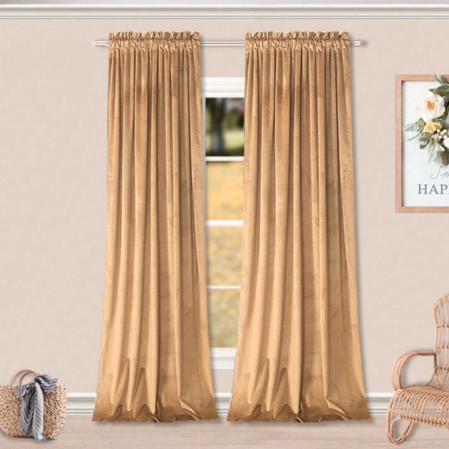 shumee Bež žametna zavesa z zatemnitvenim trakom, že pripravljena, žametna, žametna, žaba
