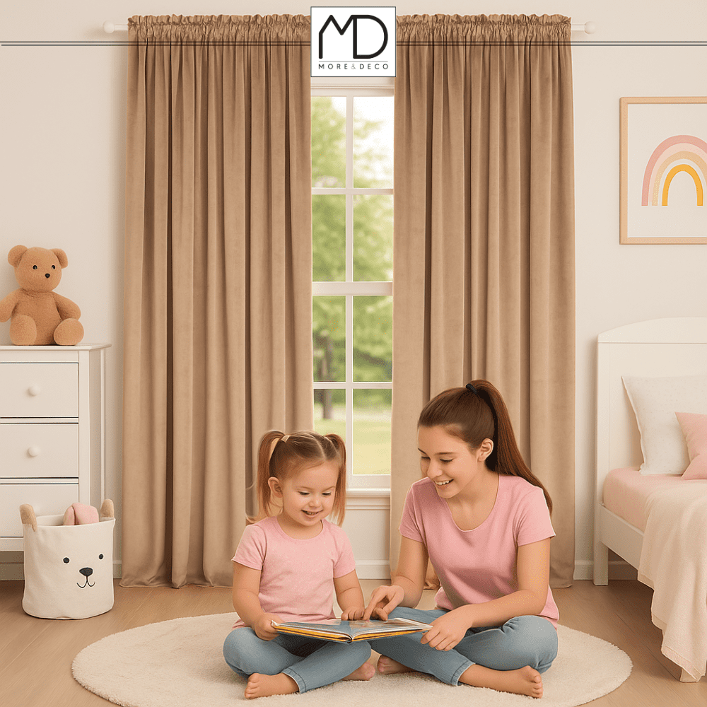✨ DEBEL ŽAMETNA ZAVESA NA ŽABJEM TRAKU, ZATEMNJUJOČA, GOTOVA ŽAMETNA LATTE BEŽ 250 × 140 cm