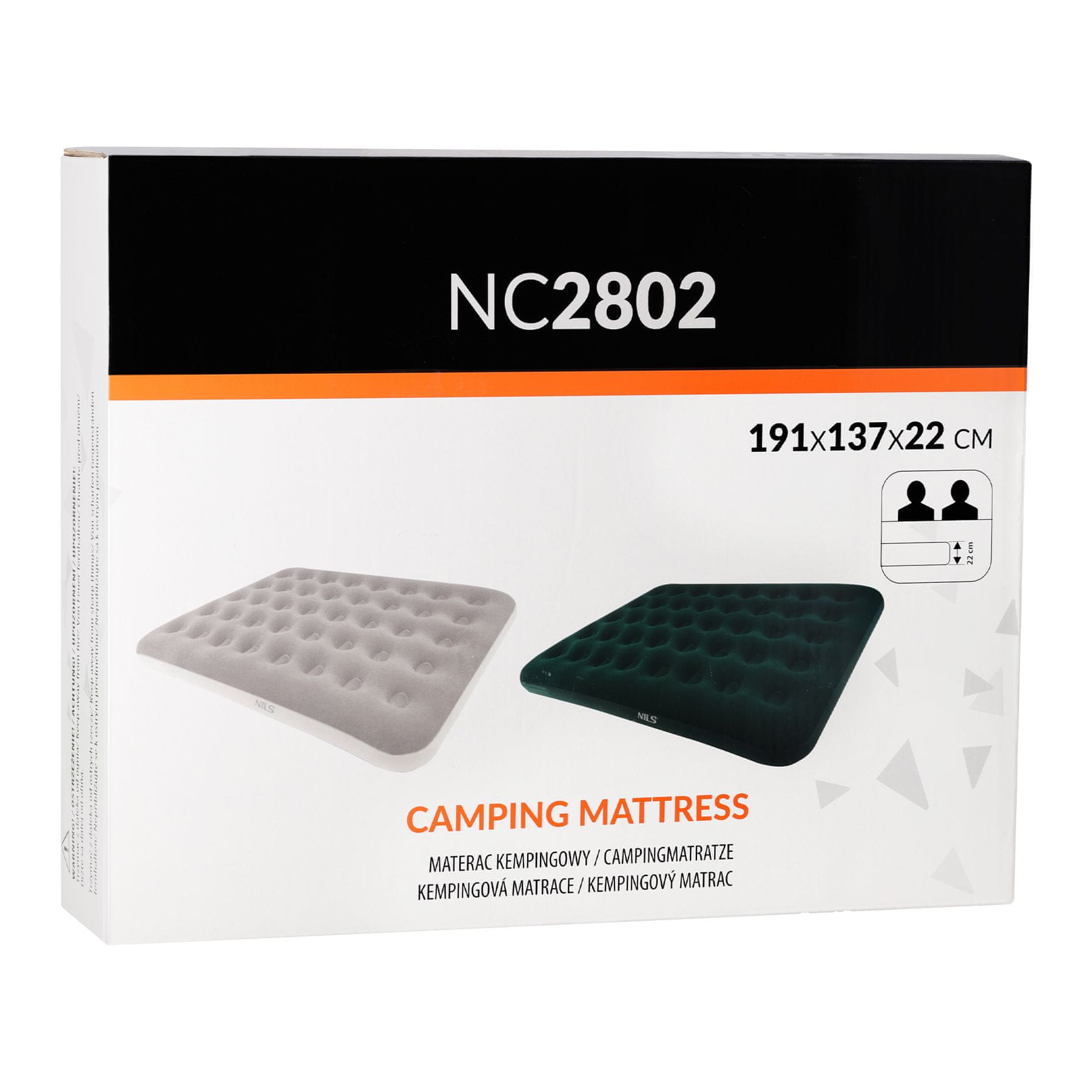 Vsestransko udobje doma in na prostem. Vzmetnica NC2802 je zasnovana z mislijo na maksimalno udobje v vsaki situaciji. Popoln je kot dodatno ležišče doma in kot udobno ležišče za potovanja. Ne glede na to, ali pripravljate prostor za goste, organizirate nočitev v šotoru ali se sprostite na svežem zraku, bo ta model zagotovil trdno oporo in udoben počitek. Prostor za dve osebi Vzmetnica z merami 191 × 137 × 22 cm nudi površino, ki je enaka standardni zakonski postelji. Je idealna rešitev za pare, pa tudi za eno osebo, ki ceni velik spalni prostor. Višina 22 cm zagotavlja udobno izolacijo od tal, ne samo da poveča udobje, ampak tudi izboljša zaščito pred mrazom in vlago pri uporabi na prostem. Vzdržljivost, ki gre z roko v roki z udobjem. Vzmetnica je izdelana iz kakovostnega PVC materiala, ki je odporen na obrabo, mehanske poškodbe in vremenske vplive. Gladka površina, ki jo je enostavno čistiti, omogoča, da ostane čist tudi po intenzivni uporabi na prostem. Struktura materiala ne zagotavlja samo vzdržljivosti, ampak tudi fleksibilnost, kar omogoča, da se vzmetnica prilagodi obliki telesa in podpira pravilno poravnavo hrbtenice med spanjem. Stabilna konstrukcija in varna uporaba: NC2802 je zasnovan za skupno obremenitev do 200 kg. To pomeni, da ga lahko varno uporabljata dve odrasli osebi brez skrbi za pretirano deformacijo ali izgubo udobja. Vzmetnica ohranja stabilnost tudi pri menjavi položaja, kar zmanjša zibanje in motnje spanja. Njegova zasnova spodbuja enakomerno porazdelitev pritiska in zagotavlja ohranitev oblike med uporabo. Dvojni ventil za večje udobje. Vzmetnica NC2802 je opremljena z dvojnim ventilom, kar znatno poenostavi njeno uporabo. Zahvaljujoč zasnovi z dvema funkcijama ga je mogoče hitro napihniti z usti ali s klasično ročno, nožno ali električno črpalko. Ta vsestranski dizajn naredi vzmetnico popolno za vsako okolje – doma, na kampiranju ali na potovanju – ne glede na razpoložljivost dodatne opreme. Popoln spremljevalec na potovanjih, NC2802 združuje funkcionalnost, mobilnost in udobje. Popoln je za kampiranje, pustolovščine, kampiranje ali daljša potovanja z družino ali prijatelji. Njegova kompaktna velikost omogoča enostaven transport in shranjevanje, ko je zložen, medtem ko njegova univerzalna zasnova pomeni, da se brezhibno prilega tako moderni notranjosti kot naravnim zunanjim okoljem. Specifikacija: Model: NC2802 Vrsta vzmetnice: dvojna Mere: 191 cm (dolžina) √ó 137 cm (širina) √ó 22 cm (višina) Material: PVC Dvojni ventil: da Največja obremenitev: 200 kg Namen uporabe: za spalnico, dnevno sobo, šotor, vrt, prikolico in teraso
