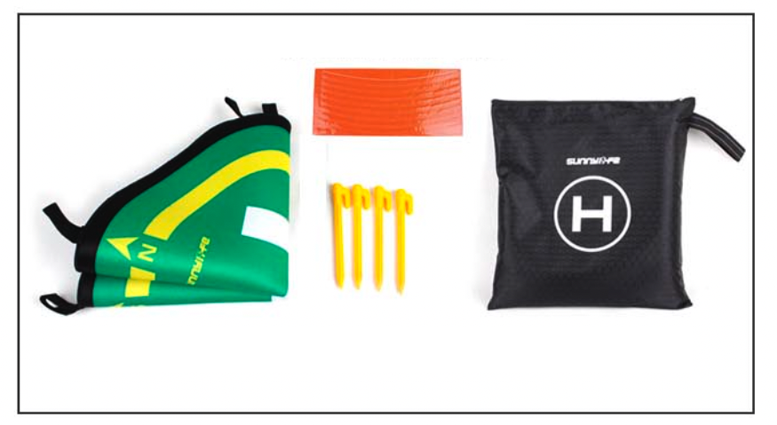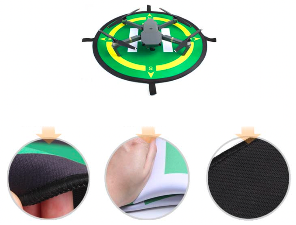 • VARNOST – Pristajalna ploščad s premerom 50 cm je eden najnujnejših dodatkov za vsakega lastnika drona. Med vzletom in pristankom se sproščajo delci peska in prahu, ki zaidejo v motorje, gimbal, kamero in druge komponente drona ter povzročijo škodo. Vzlet in pristanek se morata vedno izvajati s pristajalne ploščadi. ZLOŽLJIVA ZASNOVA – Podloga zaradi zložljive zasnove zavzame malo prostora. Vedno jo lahko imate s seboj.