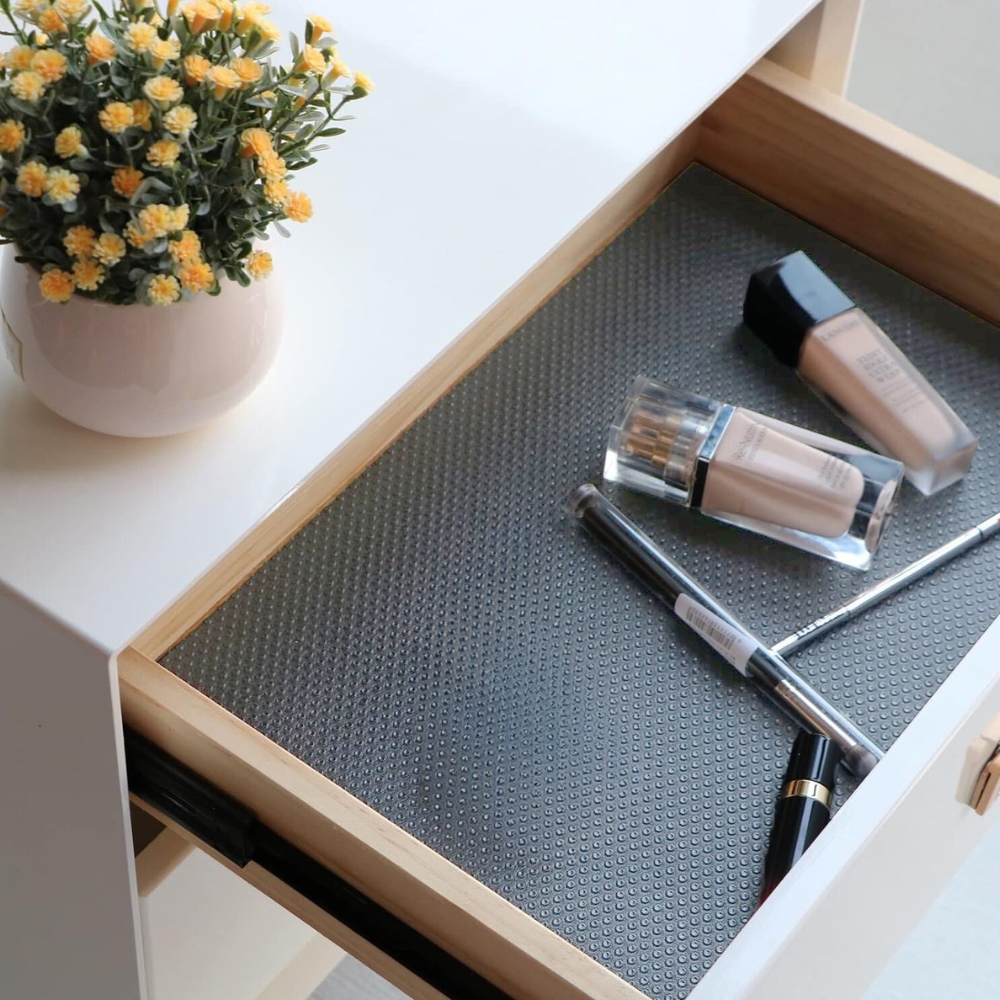 Zahvaljujoč posebni nedrseči strukturi podloga preprečuje drsenje predmetov , kar zagotavlja, da krožniki, kozarci in kozmetika ostanejo na svojem mestu. Je idealna rešitev za predale, omare, hladilnik ali celo police za čevlje!
