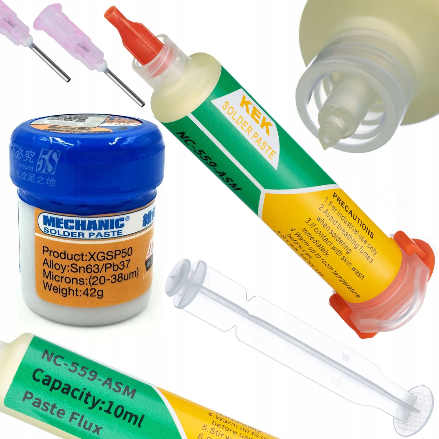Ta komplet Rosfix, ki ga sestavljata brizga s fluksom NC-559-ASM in 35 g spajkalne paste XG-50, je odlična rešitev za tiste, ki potrebujejo visokokakovostne materiale za spajkanje tako za hobi kot za profesionalno uporabo.